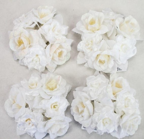 Stroik na świecę wykonany ze sztucznych kwiatów w kolorze białym. Piękna ozdoba na świece podkreślająca wyjątkowość Chrztu Św, Pierwszej Komuni Św. lub innej uroczystości kościelnej.