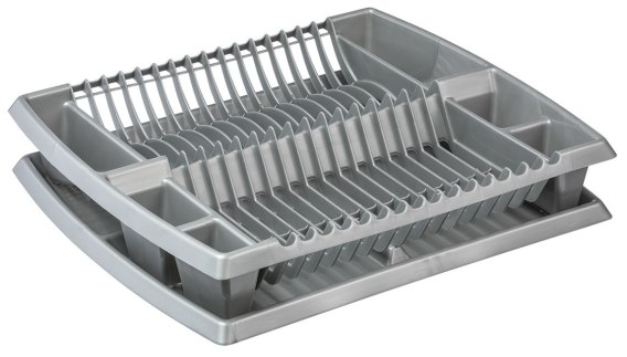 Suszarka do naczyń z miejscem na postawienie talerzy i komorami na sztućce. Wszystko umieszcza się w pozycji pionowej dla lepszego odsączenia naczyń. Suszarka wykonana z wysokiej jakości tworzywa sztucznego.