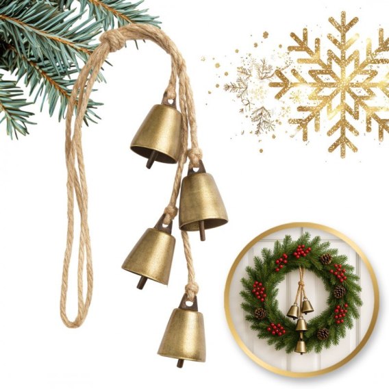 Metalowe dzwonki, ozdoba świąteczna - zestaw 4 szt.