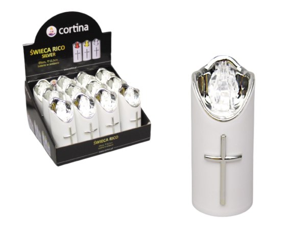 • Świeca LED RICO 15 x 5cm biało-srebrna z transparentnym płomieniem 2/23/LUX.DIS