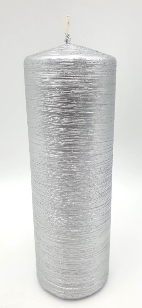 Świeca walec srebrna drapana 70/200mm | W70200D