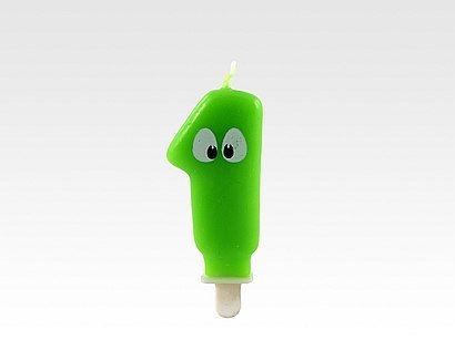 • Świeczka "1" H:7,5cm ZIELONA Z OCZAMI 24 szt. 62-71