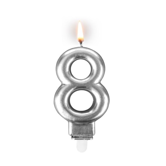 Świeczka 24szt. cyfra srebrna ,,8''