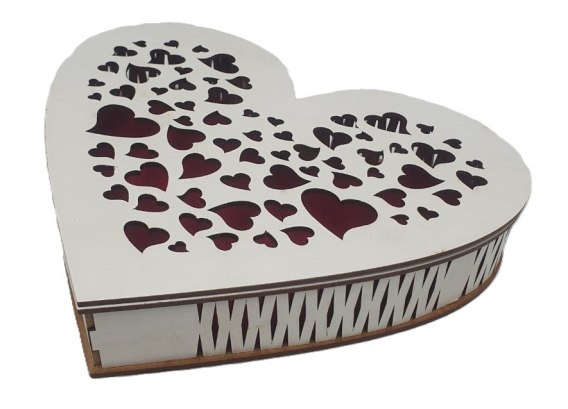 Szkatułka drewniana wycinana serce biała 25 x 20 x 4,5 cm