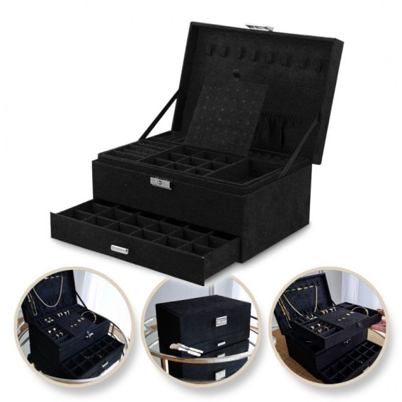 Szkatułka na biżuterię kuferek etui organizer czerń PD119CZ