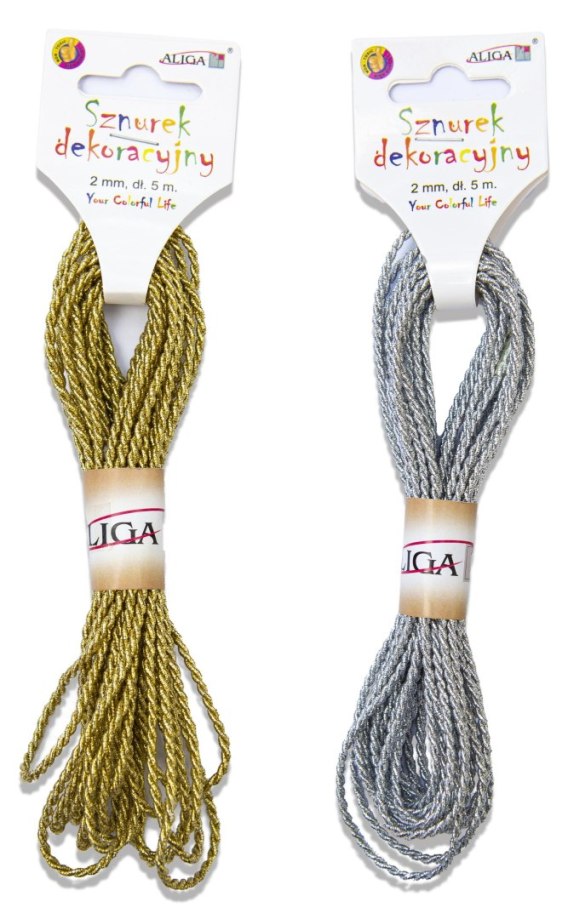 Sznurek 12szt dekoracyjny 2mm x 5m 2 złoty i srebrny | SZM-3319