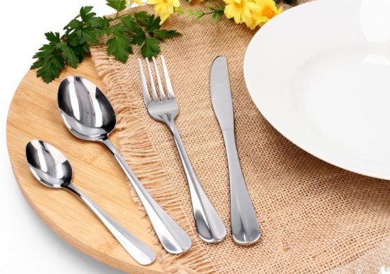 Zestaw sztućców: 6 łyżek, 6 widelców, 6 łyżeczek i 6 noży. Wykonane z wysokiej jakości stali nierdzewnej, dopuszczonej do kontaktu z żywnością. Sztućce staną się wyjątkową ozdobą każdego nakrycia.