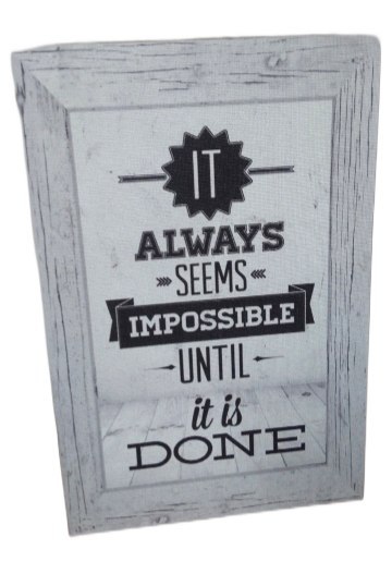 Tabliczka/obraz do zawieszenia 20x30cm IT ALWAYS SEEMS IMPOSSIBLE UNTIL IT IS DONE