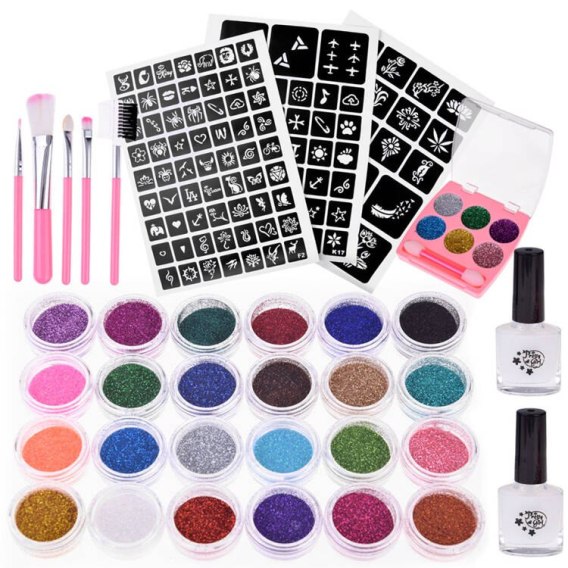 Tatuaże brokatowe duży zestaw do robienia tatuaży 24 kolory szablony ZA4785