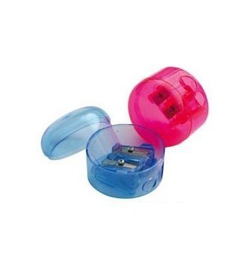 Temperówka z pojemnikiem −z plastikowym pojemnikiem, z czystego polistyrenu − wyposażona we fluorescencyjny pojemnik w różnych wersjach kolorystycznych oraz wzorach −posiada stalowe ostrze mocowane wkrętem.