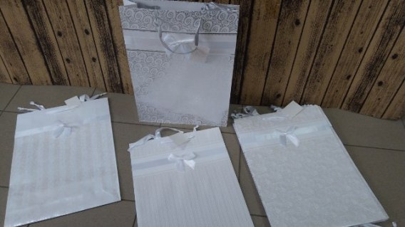 Torebka prezentowa 12szt BIAŁA ZŁOCONA 33X45,7X10,2cm