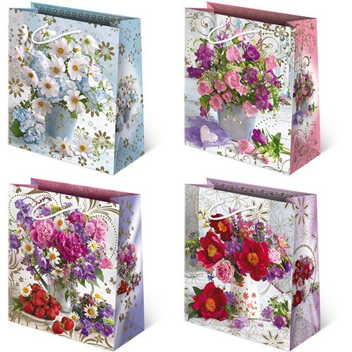 Torebki ozdobne 10szt. T-8L set 148 Kwiaty 20 x 24 x 11 cm