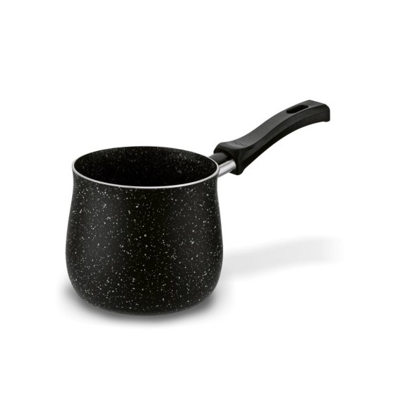 Pojemność modelu wynosi aż 800 ml. To daje spore możliwości, jednocześnie gwarantując, że nie zajmie wiele miejsca podczas przechowywania. Wnętrze tygielka do kawy Marmara Black pokryte jest nieprzywierającą powłoką marmurkową typu stone. Ułatwi ona nie tylko pielęgnacje rondelka, ale też wytrzyma wiele cykli ścierania.