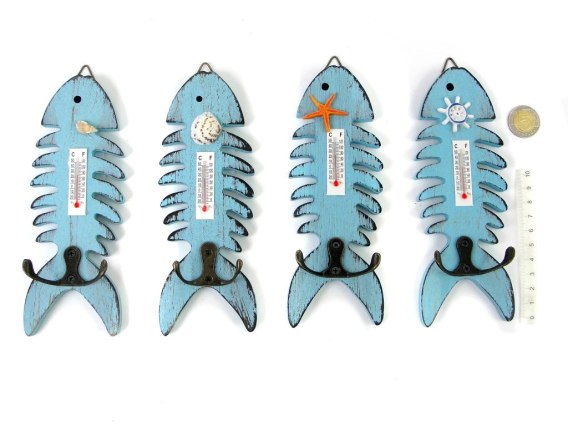 Wieszak 4szt z termometrem RYBA drewniany 6x18cm