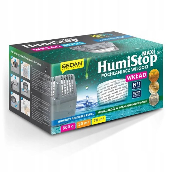 Najwyższej jakości wkład zapasowy do pochłaniacza wilgoci "HUMISTOP MAXI" Dzięki niemu pochłaniacz kontroluje i samodzielnie reguluje nadmiar wilgoci w pomieszczeniach.