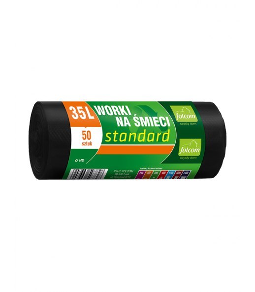 Standardowe worki Folcom wykonane zostały z cieńszej i prześwitującej folii HD, która idealnie sprawdzą się do przetrzymywania lekkich śmieci.