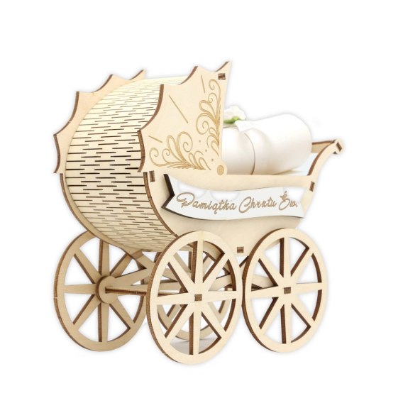 Wózek drewniany Pamiątka Chrztu Świętego biały