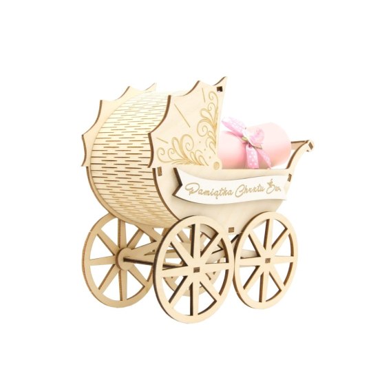 Wózek drewniany Pamiątka Chrztu Świętego różowy