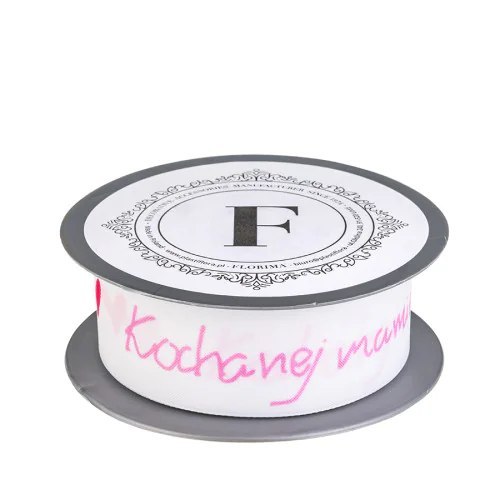 Wstążka biało różowa 3,5cm x 10mb KOCHANEJ MAMIE - 225592 M