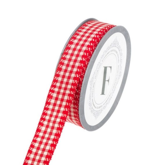 Wstążka ozdobna kratka biały - czerwony 2,5/10 - 225343