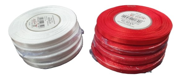 Wstążka satynowa 6 mm x 32 m biała + czerwona 8 szt. AX06-01-08