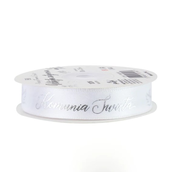 Wstążka satynowa Komunia Święta biało-srebrna 20m 131961