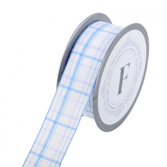 Wstążka tkana biały j. niebieski krateczka 10m | 225385 M.3,5/10 01-29-30