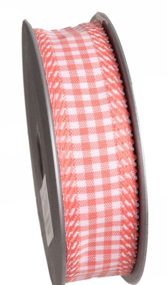 Wstążka tkana krata biały koralowy | 225343 M.2.5/10 01-71-71