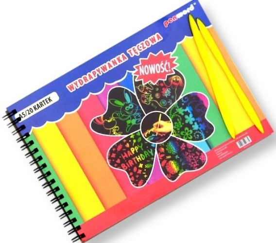 Wydrapywanka TĘCZOWA NA SPIRALI A4 a'20 + 2 rylce