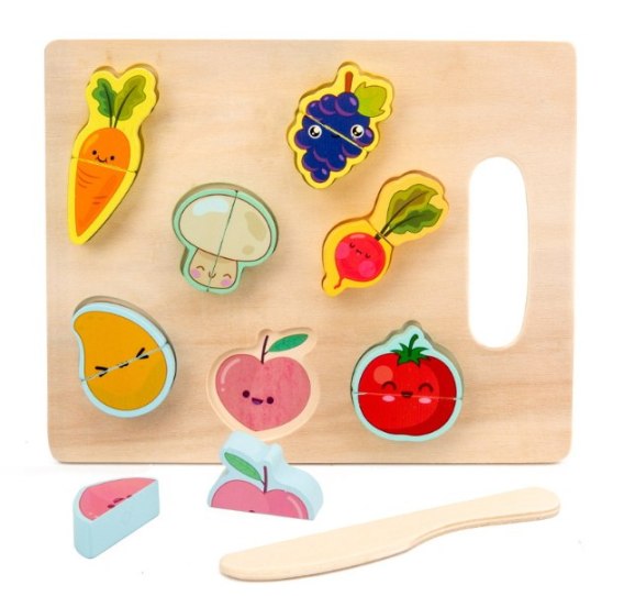 Zabawka drewniana Owoce i warzywa do krojenia + deska i nóż 22x18 cm NT6068
