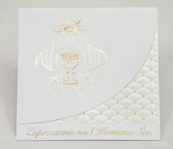 Estetycznie wykonane, bogato zdobione zaproszenie komunijne