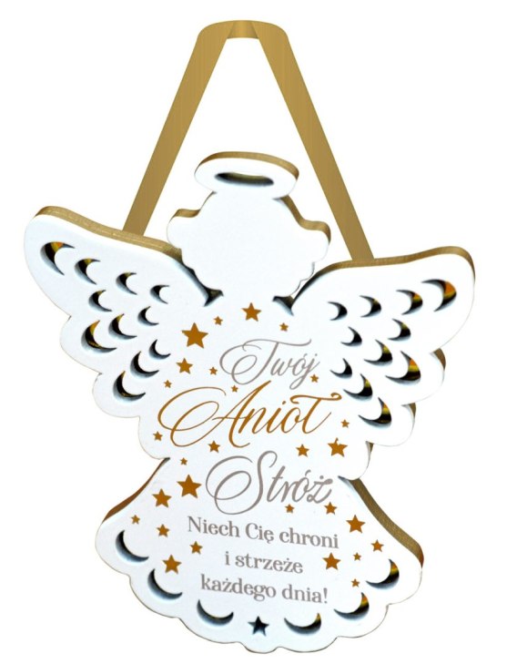 Na tylnej ściance Aniołka jest tasiemka do zawieszenia na ścianie.