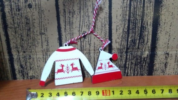 Zawieszka drewno 2szt SWETEREK+CZAPKA HGM-90352A-WH
