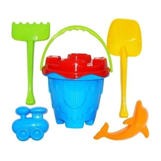 Kolorowy zestaw zabawek do piasku. Akcesoria z zestawu można wykorzystać w piaskownicy, ogródku czy na plaży. Żywe kolory przyciągną uwagę malucha i z pewnością uatrakcyjnią czas spędzany na świeżym powietrzu. Wiaderko w kształcie zamku z akcesoriami dostarczy wielu godzin fantastycznej zabawy w budowanie fortecy!