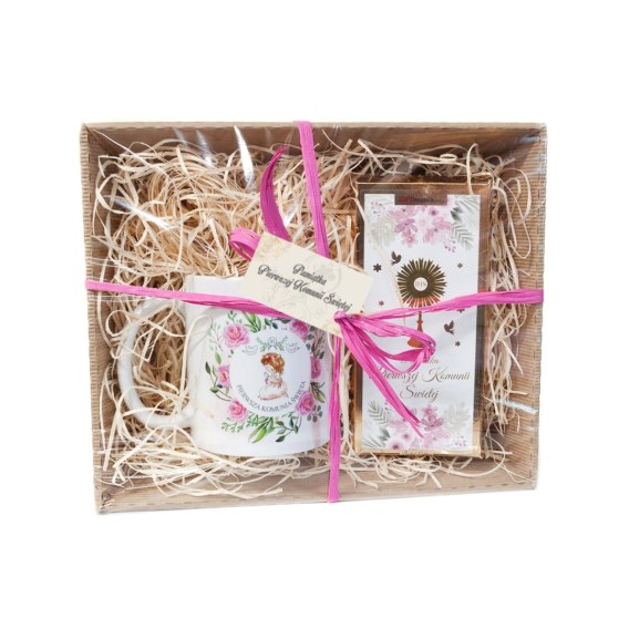 Zestaw "Pamiątka Pierwszej Komunii Świętej" - kubek + czekolada - dziewczynka
