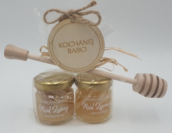 Zestaw babci 3 miody+miodziarka+tabliczka
