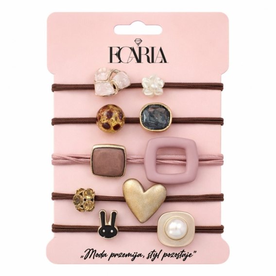 • Zestaw frotek gumek 5w1 na plakietce, brązowe z kamieniami, złote SERCE GUM183