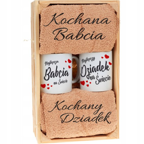 Zestaw kubków i ręczników na Dzień Babci i Dziadka