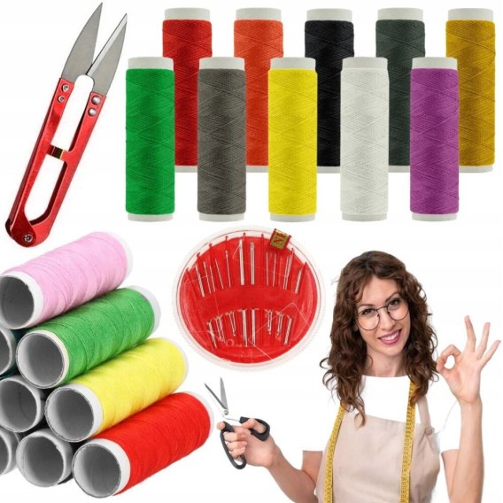 Zestaw nici do szycia ręcznego wyszywania igły nożyczki krawieckie 12 el PID1023