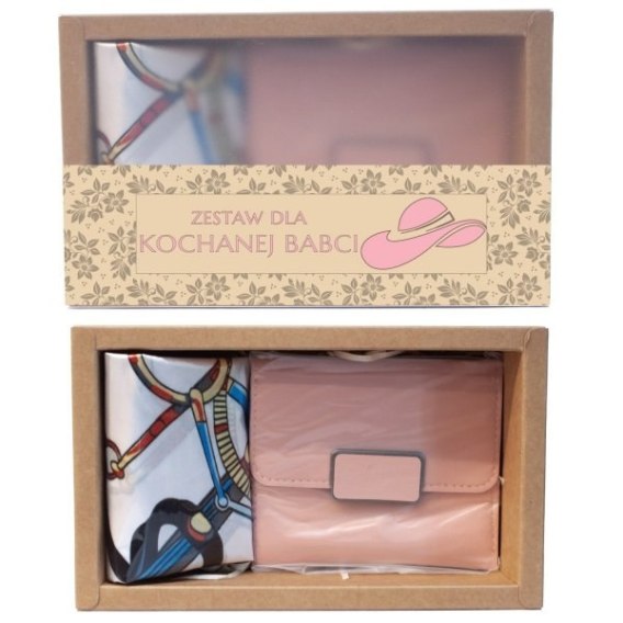 Zestaw prezentowy dla Babci . Portfel i apaszka w opakowaniu prezentowym. 20x12x6 cm