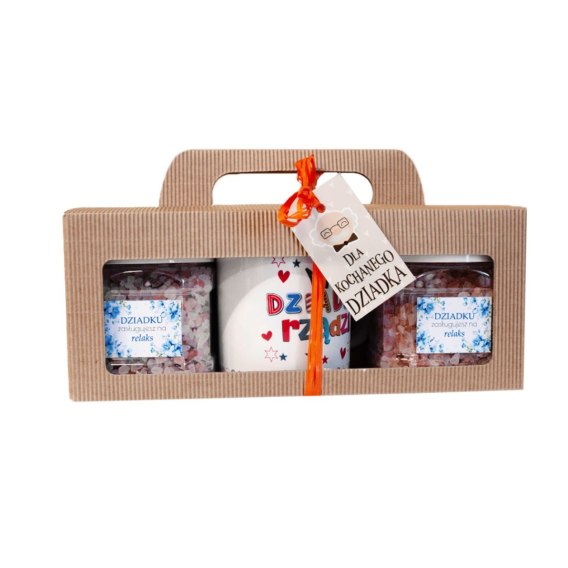 • Zestaw prezentowy dla Dziadka - sól himalajska + kwiat lawendy + kubek w ozdobnym opakowaniu
