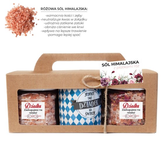 Zestaw prezentowy dla Dziadka sól himalajska + płatki róż + kubek