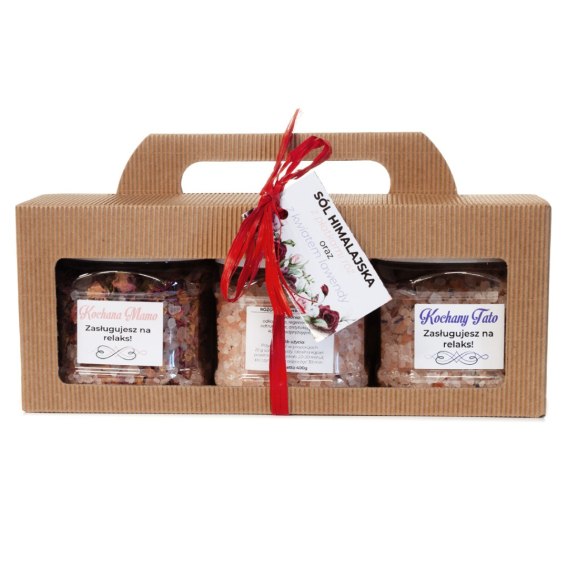 Zestaw prezentowy dla Mamy i Taty w ozdobnym opakowaniu - sól himalajska + płatki róż + kwiat lawendy DIL-PH-SÓL-MT-ZES-03