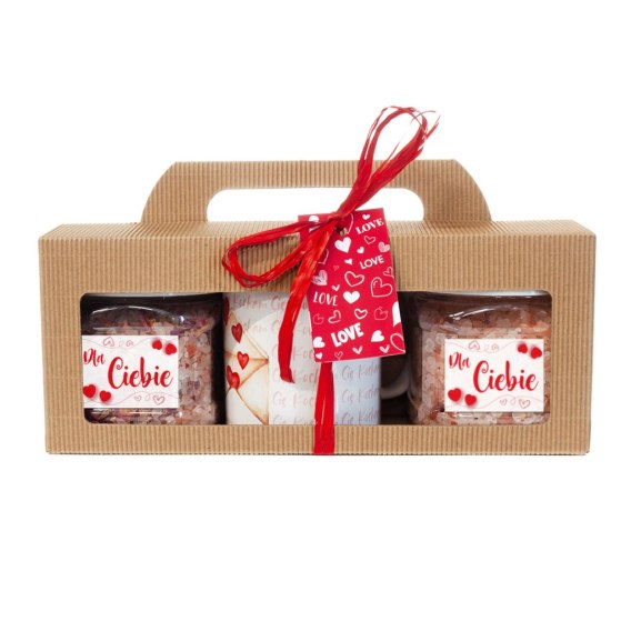 Zestaw prezentowy - kubek "KOCHAM CIĘ" - sól himalajska + płatki róż w ozdobnym opakowaniu