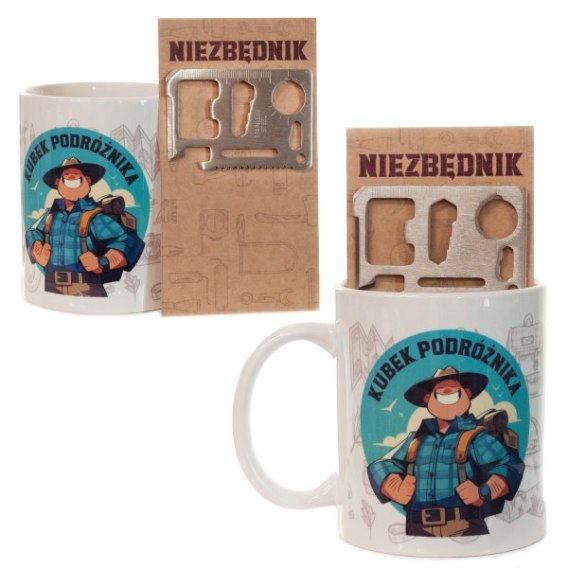 Zestaw prezentowy kubek PODRÓŻNIKA z narzędziem wielofunkcyjnym