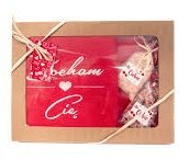 Zestaw prezentowy ręcznik KOCHAM CIĘ czerwony + sól himalajska + płatki róż