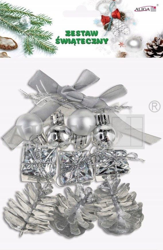 • Zestaw świąteczny srebrne ozdoby bożonarodzeniowe SGD-02