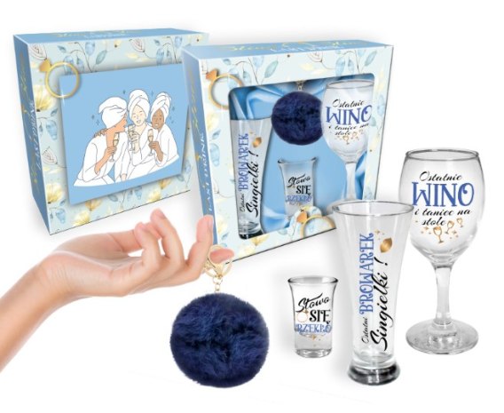Zestaw szklanka kieliszki + brelok granat NIEZBĘDNIK PANIEŃSKI