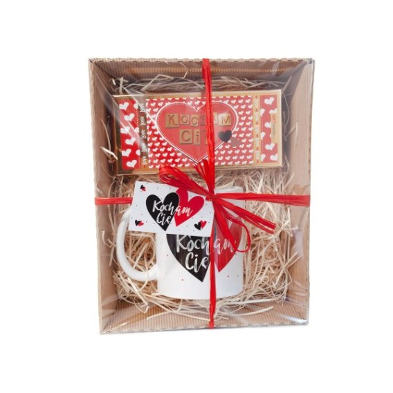 Zestaw walentynkowy - kubek z napisem "KOCHAM CIĘ" + czekolada "KOCHAM CIĘ "