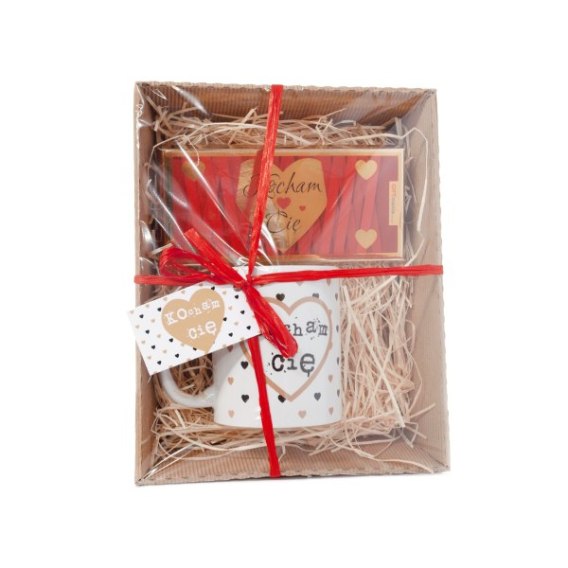 Zestaw walentynkowy - kubek z napisem "KOCHAM CIĘ " + czekolada "Kocham Cię"